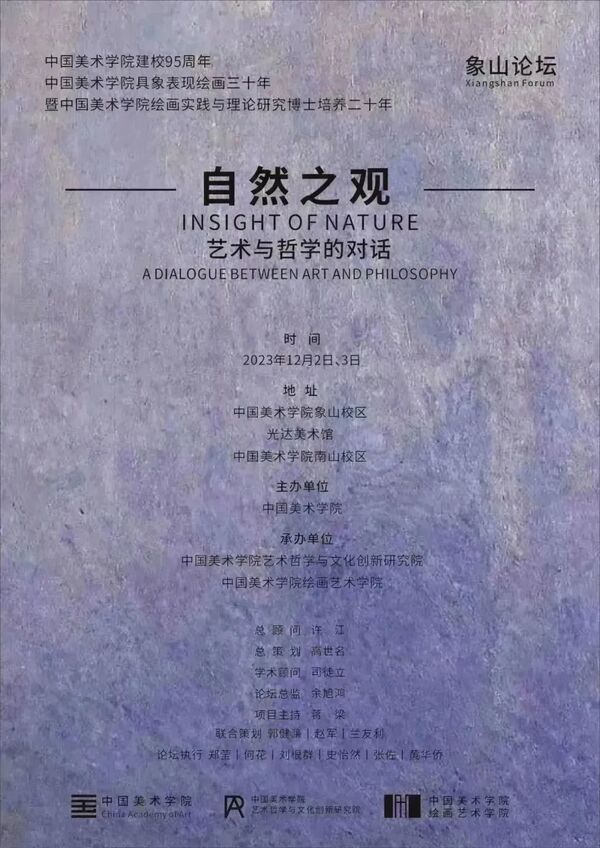 论坛由中国美术学院主办,中国美术学院艺术哲学与文化创新研究院、中国美术学院绘画艺术学院承办。来自北京大学、清华大学、复旦大学、中国人民大学、香港中文大学、澳门大学、上海交通大学、中国美术学院等四十余位哲学家、艺术家、评论家将出席本次论坛。