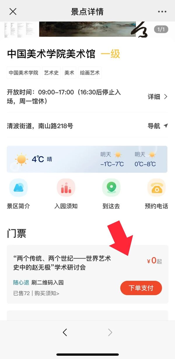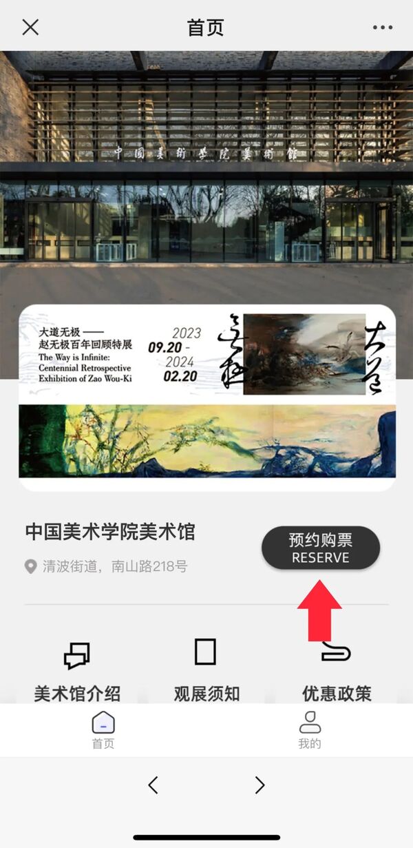 1、支付宝搜索或微信关注“中国美术学院美术馆”,点击【预约购票】选择“两个传统、两个世纪”学术研讨会进行免费预约,凭预约成功二维码入校;