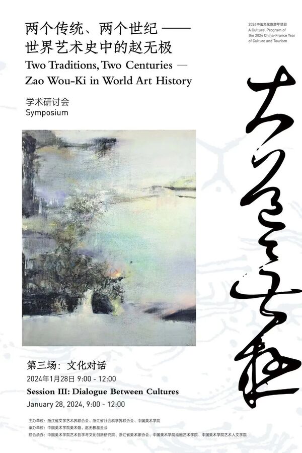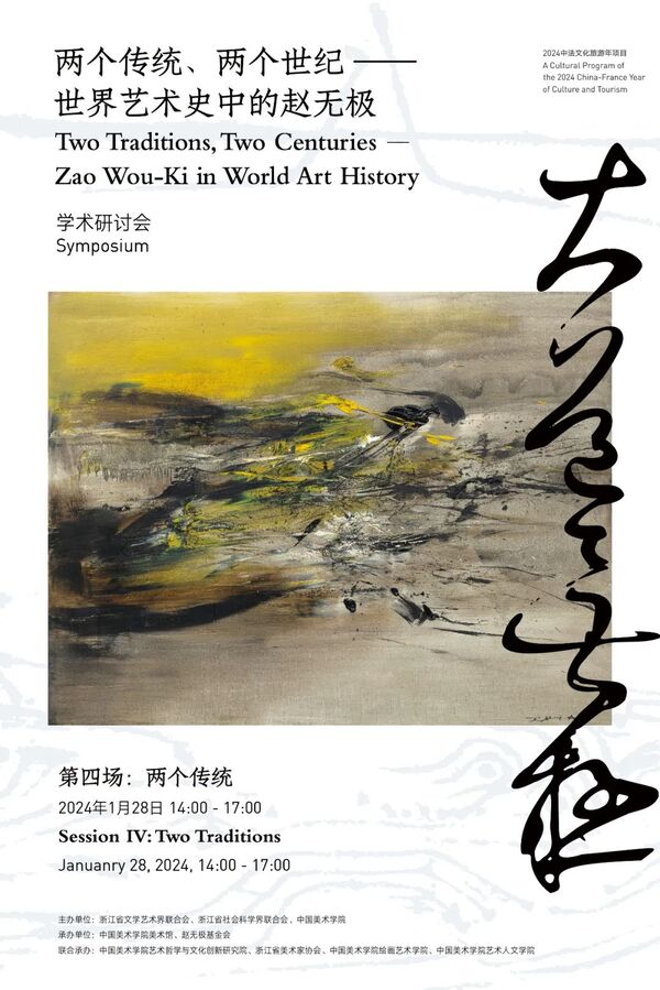 2024年1月27日,是中法建交60周年纪念日。“大道无极——赵无极百年回顾特展”第三次学术研讨会:“两个传统、两个世纪——世界艺术史中的赵无极”将在中国美术学院举办。研讨会邀请中国、法国等国内外专家学者,从艺术史、艺术世界、文化交流、文明互鉴等不同视角,共同探讨赵无极的艺术在世界艺术史中的独特意义,呈现赵无极在东西文明互鉴、中法文化交流中的独特影响。