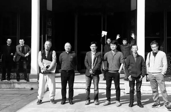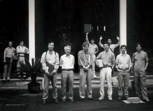 1995年小莲庄会议部分参会成员在藏书楼前合影 (前排左起:杨参军、金一德、司徒立、焦小健、章晓明、高友林,后排左起:徐芒耀、黄发祥、许江、翁诞宪)