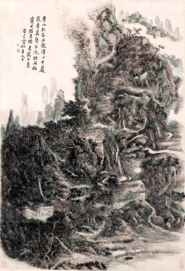 《黄山松谷五龙潭》黄宾虹 纸本 设色 纵168.5厘米 横120厘米 1953年 中国美术学院藏