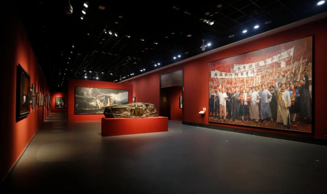 整个展览将艺术创作与党的伟业紧密联系在一起,聚焦习近平总书记“七一”重要讲话主题,围绕红色文化和人文传承两条主线,分红色史诗、剧场赞歌、时代峰峦、群英璀璨四个部分展开,共展出艺术作品和史料800余件(组)。