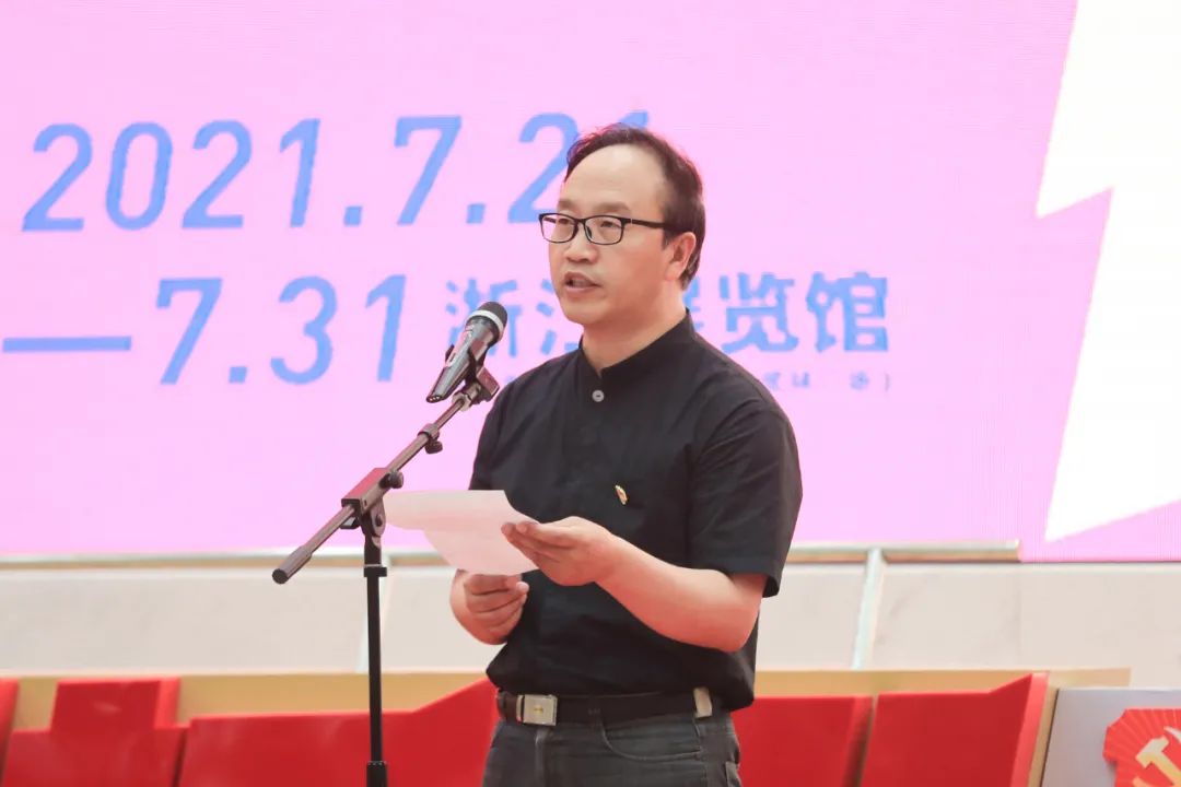 许江在主持中指出,此次展览既是献礼百年华诞的艺术特展,又是浙江艺术工作者学习贯彻习近平总书记在庆祝中国共产党成立100周年大会上讲话闻风而舞的大型工程,更是浙江艺术界百年新征程的誓师大会。在习近平总书记的重要讲话中,贯穿着一种深切的历史眺望,氤氲着动人的使命情怀,这种眺望和情怀为我们的文化眺望注入一种时代的高度,一种百年正当时、奋进新征程的精神维度。我们将在重要讲话精神的指引下,携手同心、阔步前行,迈向新征程,攀登新高峰。