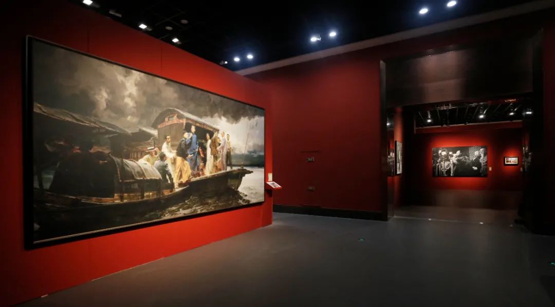 作为本次特展的开篇之作,“红色史诗”以红船的“启航”、“五四运动”的潮涌、“南昌起义”的枪声、“开国大典”的实拍,徐徐展开浙江文艺界百年担当与贡献的历史长卷。