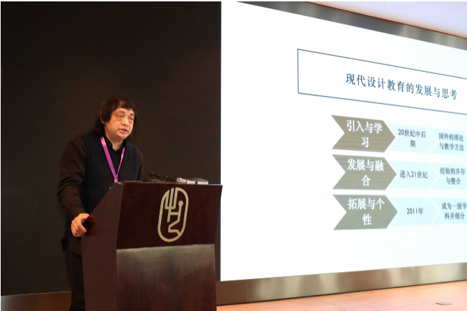 清华大学美术学院院长、教育部高等学校设计学类专业教学指导委员会主任委员鲁晓波作主旨发言