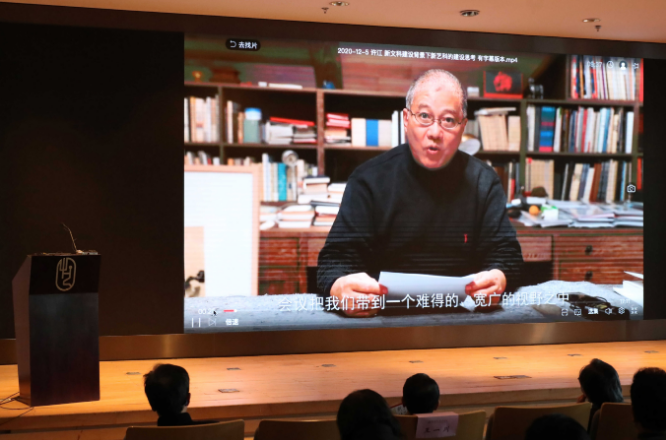 中国美术学院原院长、教育部高等学校美术学类专业教学指导委员会主任委员、中国美术学院艺术哲学与文化创新研究院院长许江作线上主旨发言