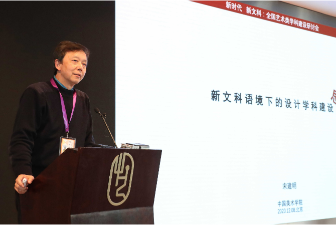 中国美术学院教授、教育部高等学校设计学类专业教学指导委员会副主任委员宋建明作主旨发言