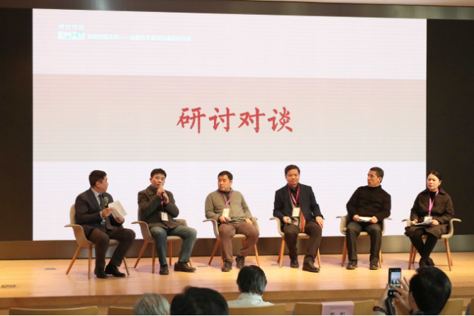 主旨发言环节后进入研讨对谈环节,由清华大学美术学院副院长杨冬江主持。教育部高等学校设计学类专业教学指导委员会委员、四川美术学院副院长段胜峰,国务院学位委员会设计学学科评议组成员、教育部工业设计专业教学指导分委员会秘书长、湖南大学设计艺术学院院长季铁,教育部高等学校设计学类专业教学指导委员会委员、武汉理工大学艺术与设计学院院长潘长学,北京印刷学院副校长田忠利,江南大学设计学院院长魏洁先后发言,并就《新文科建设宣言》内容、跨学科融合发展、产学研理论与实践的结合、信息技术赋能文科教育、文化自信传承与创新等话题发表观点,展开了热烈的讨论与互动。