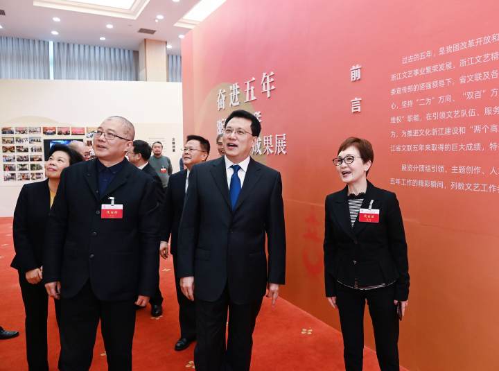 12月29日至30日,浙江省文学艺术界联合会第九次代表大会在杭召开。会前省领导参观了文化艺术界成果展。浙江新闻客户端 记者 胡元勇摄