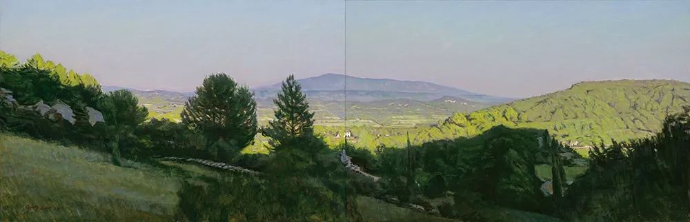 司徒立擅长风景画。风景画比沉思或更能提供“道”的入口,是所有深思更优的捷径,因为它直接融入那种内在性。并且,通过画笔的交织往复运动,源源不断的接近过程中以形写形、以色貌色,在风景中重新燃起对生命根本的兴趣。风景并不是知觉客体,它并非事先提供给我们的各种偏好,通过它们让我们重新发现内在性的简单路径。“斋心”才能空纳万物,唯有从气的能量在内部充塞并在那里转变成心灵之纯净,方可感受到那从外部贯穿风景之风之明澈或纯净。司徒立在存在论层面上思考中国艺术精神的静观诗学,他坚持“实境”描绘的绘画实践。