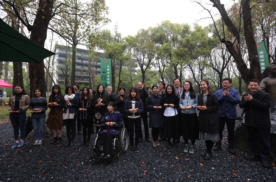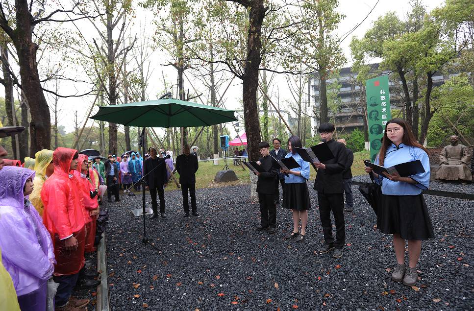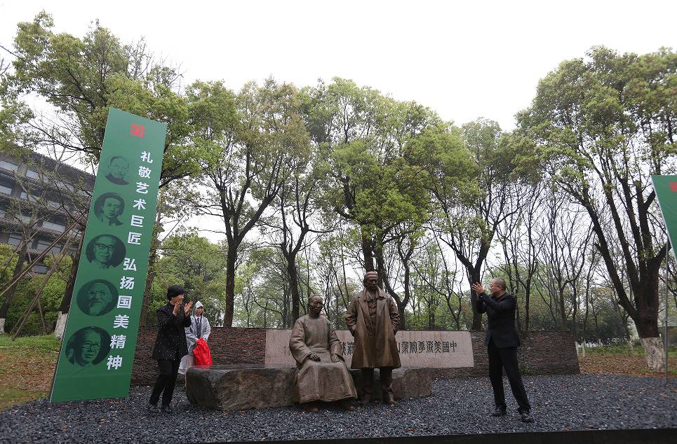此后,学校党政领导和创作者代表、学生代表分别为“巨匠广场”蔡元培、林风眠、潘天寿、黄宾虹、刘开渠雕塑揭幕。