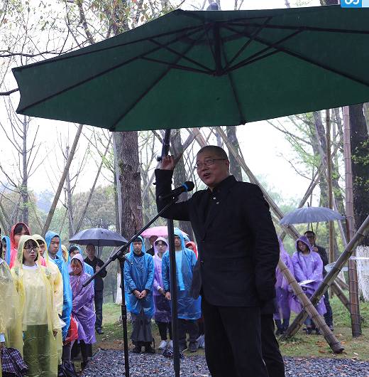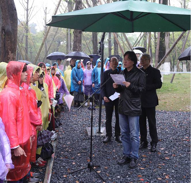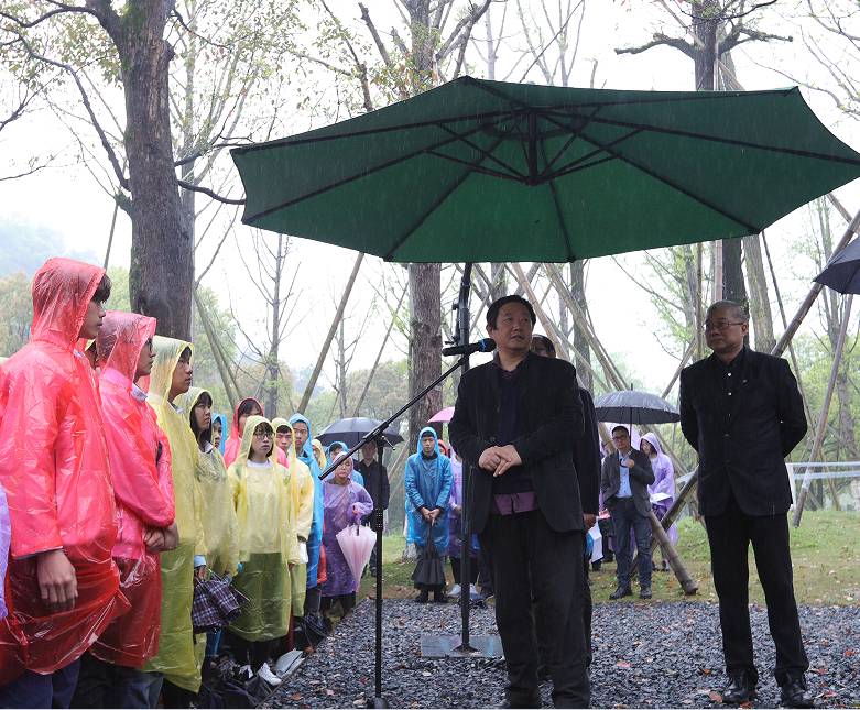 院长许江致辞,他回忆起一年前的校庆日上,美院校训发布和校训石落成,从此“行健 居敬 会通 履远”八字,成为全体国美人的精神圭臬。今天,“巨匠广场”的落成典礼,对我们来说同样是一生一遇。他说,“羊公碑尚在,读罢泪沾襟”,“巨匠广场”上的巨匠群像们,正是这样震撼我们的心灵,让我们观后泪如泉涌的生命记忆。希望国美学子们,在未来的岁月中能更加严格要求自己,发愤图强,为迎接明年的90周年校庆而战!