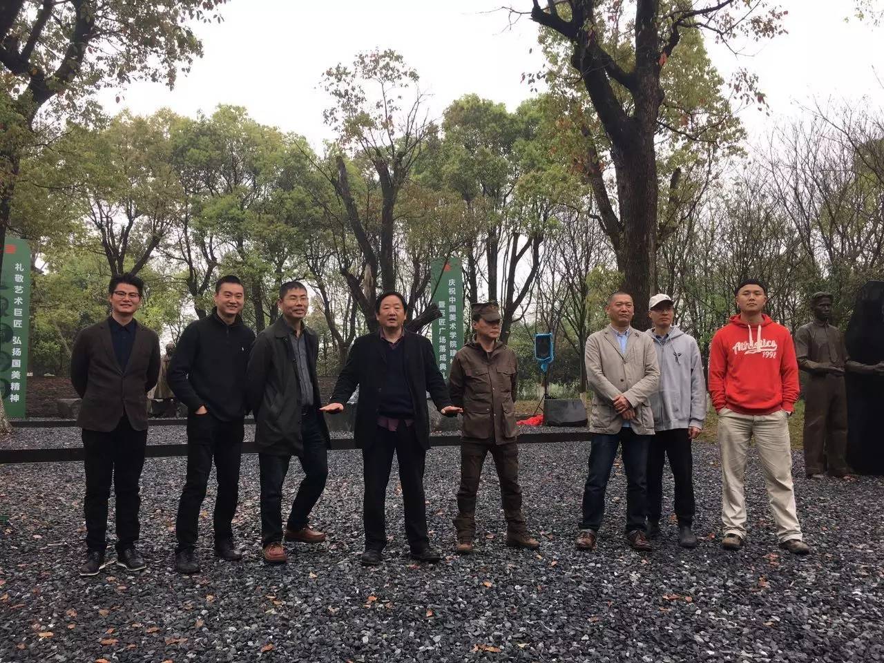 巨匠广场雕像创作者和场地设计者合影(按左到右):刘元捷、袁柳军、钱云可、杨奇瑞、龙翔、张克端、刘杰勇、余晨星