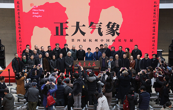 12月28日上午10时,第四届杭州·中国画双年展在浙江美术馆开幕。杭州中国画双年展秉持「回眸世纪发展之路,标新国画学术话语,重建当代文化联系,再造东方艺术高峰」的学术宗旨,自2011年以来,经过三届展览的成功举办,已经成为迄今为止规模最大、规格最高、最具学术性和影响力的中国画展览。