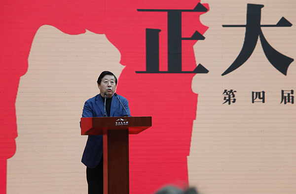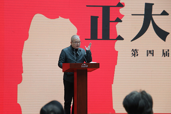 许江在开幕式上说到:「以刘大为主席为代表的策展组邀约了来自全国的代表画家,从家国之颂、诗画之雅、民乐之风三个方面来重访中堂绘画的意义之所,重构绘画与中国人的家族家风的心灵联系,由此来推出中国画的正大气象,可谓匠心独运、气象恢宏。本次展览专门设计了诸多独立的中轴空间,突出地演示了中堂绘画的拱卫之势,以此营造中堂现场的总体效果,让我们一次次地亲临正大气象的心灵和身体感受。……我们衷心祈望通过中堂绘画,中国画能重建正大之气,中国家庭能够重建其观念与品位的传承,中国社会能够重建绘画的公共价值与传播。」