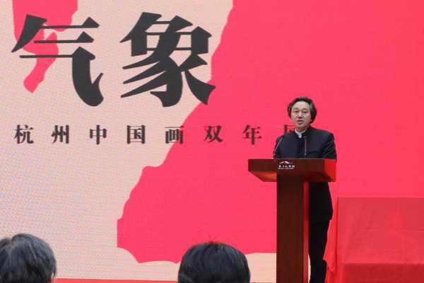 刘大为在开幕式上讲到:「杭州中国画双年展的创办是有特色、有文化战略思考的,杭州中国画双年展,主题和操作方式都很明确,每一届推出一个主题,围绕着传统的文化和艺术样式,从不同层面和角度去展示中国文化的精神,从长卷、小品、中堂等,从各个层面、各个角度、各种形式来展示中国传统文化艺术的魅力和中国文化精神,这是一个有深度的独特的构思。」