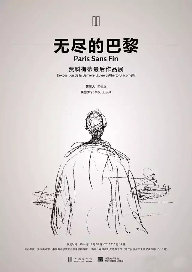 本次展览展出了光达美术馆收藏的《无尽的巴黎》全部一百五十幅石版画和贾科梅蒂的四件青铜雕塑。展览由司徒立先生策划,光达美术馆和中国美术学院艺术现象学研究所共同主办,长江商学院浙江校友会、建龙控股公司提供赞助,展期为2016年11月19日至2017年5月18日。