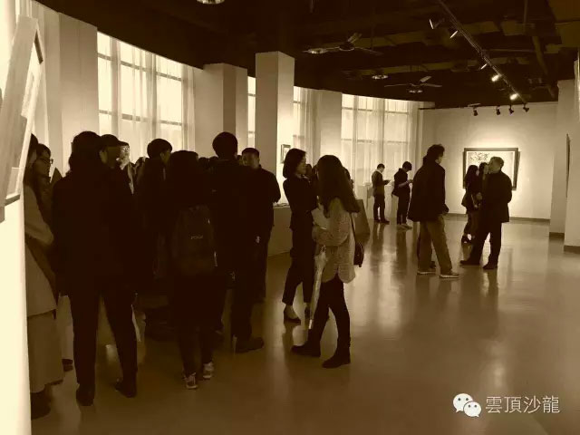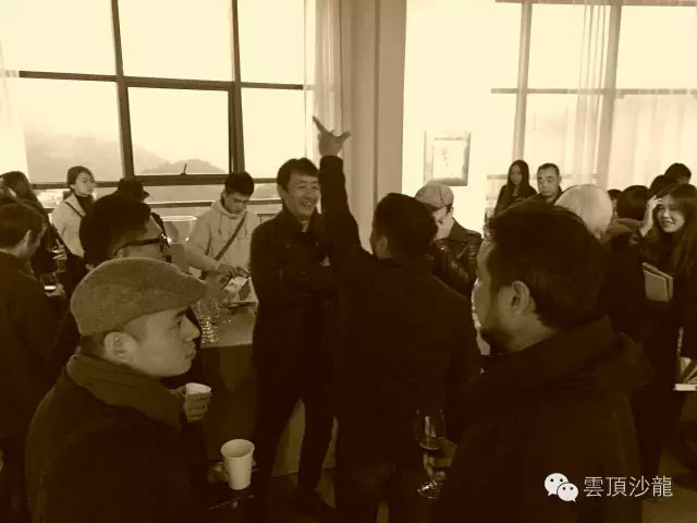 二零一六年十一月二十二日,小雪。气温骤降,山里更增一层寒意。室外,小雨连绵,云天相接;室内,人头攒动,一片温馨。下午三时,云顶沙龙开馆展开幕,云顶沙龙迎来了第一群朋友。在温暖的灯光下,参展的艺术家亲自引领大家赏画,分享艺术创作的甘苦。观展后大家聚坐畅谈艺术和人生,对云顶沙龙的未来做了一番设想和规划。中国美术学院艺术现象学研究所为本次展览提供了有力的学术支持,蒋水潮先生、郭成先生和傅军武先生为此次展览付出了许多宝贵的时间,来看这个小展览的老朋友和新朋友大都专程赶来,在此一并谢过。