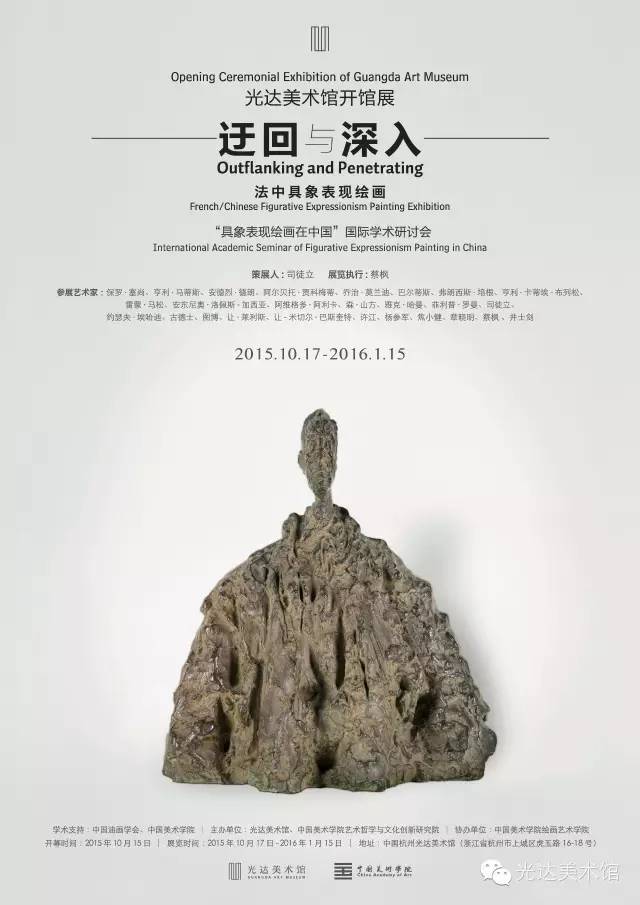 2015年10月15日下午三点,光达美术馆举行了开馆仪式,并举办“迂回与深入——法中具象表现绘画”开馆展。此次展览由中国美院艺术现象学研究所所长、艺术哲学与文化创新研究院院长司徒立策展,光达美术馆、中国美院艺术哲学与文化创新研究院(艺术现象学研究所)主办,中国美院绘画艺术学院协办。