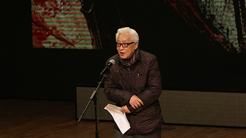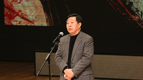 中国美协副主席、中央美术学院院长范迪安在致辞中讲道,许江的言、行、思想突出了他集中的一致性,他把自己的思考与实践与我们时代的发展结合起来,其作品值得人们去多方面思考和评价。许江的艺术体现了他坚决贯彻习近平总书记在去年文艺工作座谈会上提出的“坚持以人民为创作导向”精神的创作思路。许江的“东方葵”将个人创作纳入历史进程之中,从抒情到言志,从感兴到史诗,表达了当今新的艺术特征,塑造了这个时代视觉的史诗。