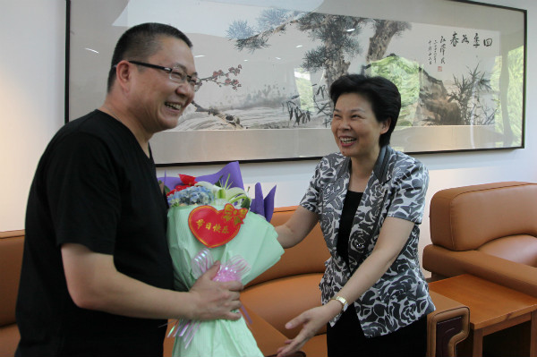 葛慧君部长一行来到我院南山校区,向王澍教授献上鲜花,并与王澍教授进行了亲切交谈。葛部长代表省委省政府向王澍教授表达了诚挚的问候,并详细询问了王澍教授工作、创作、生活等各方面的情况。葛部长指出,省委省政府高度重视人才工作,大力实施人才强省战略,对于王澍教授这样本土培养和成长起来的人才更是视若珍宝。2011年,省委作出了大力推进文化强省建设的决定,目前省里正在美院象山校区附近区域着力打造“之江文化中心”等文化建设项目,必将与美院发展相得益彰,同时也显示了美院在全省文化建设发展中的辐射带动作用,希望王澍教授在文化建设项目的建筑设计方面贡献智慧。葛部长同时希望王澍教授潜心研创、多出精品大作,为美院建设和浙江发展作出更多贡献,同时要保重身体。葛部长希望中国美院进一步抓好人才工作,为浙江发展建设提供更多的智力支持和创意支撑,同时请学院转达对全体教职员工的节日问候和祝福。