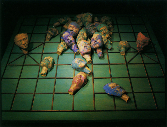 与伏尔泰弈棋之四·王位上永恒的对峙 纸浆、宣纸、综合技法 200x200x200cm 1992年